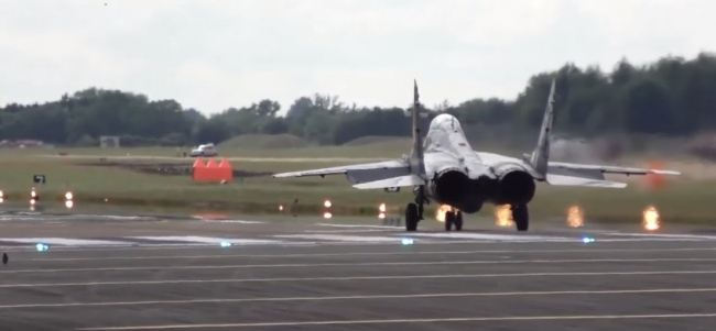 МиГ-29 Вертикальный взлёт. Невероятный взлет МиГ-29 покорил зрителей авиашоу. Новые возможности российского истребителя МиГ-29 покорили авиационных экспертов всего мира. Одна из причин: самолет совершает так называемый укороченный взлет. Выглядит это так, будто он вертикально взмывает вверх. Такая воздушная фигура требует большого мастерства пилота. Ведь нагрузки очень серьезные.