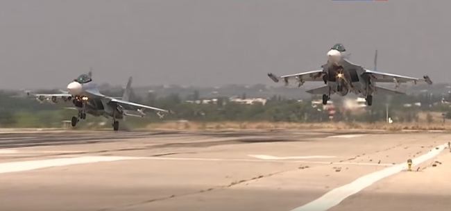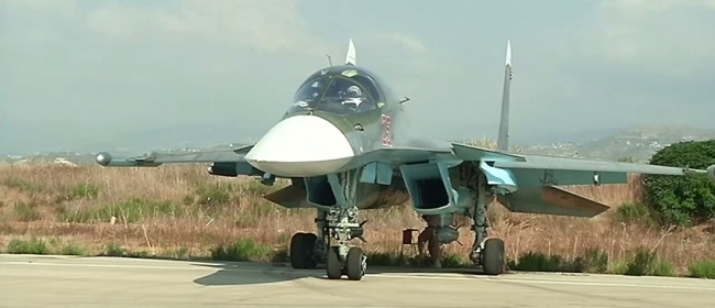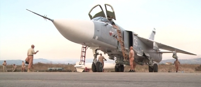 ВКС России в Сирии (19.01.2016) Боевой вылет бомбардировщика Су-24М с аэродрома Хмеймим по объектам террористов в Сирии. ВКС РФ уничтожили в Алеппо и Хаме склад оружия и колонны внедорожников террористов.