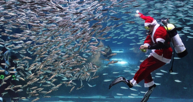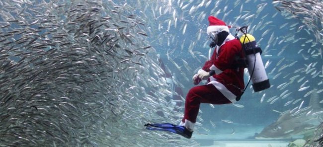 В преддверии Рождества в сеульском океанариуме премьера - дрессированные сардины под управлением Санта-Клауса.