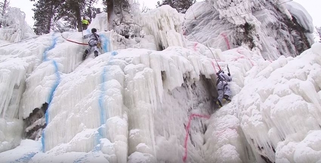 Команды борются за победу в скоростном прохождении уникальной горной трассы, состоящей из пересеченных участков местности, 20-метровых отвесных скал, а также замерзших горных водопадов.