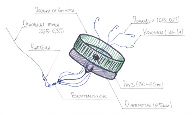 Теперь перейдём к описанию способа ловли на «соску», попутно останавливаясь на конструктивных особенностях других элементов оснастки.
