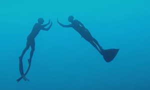 Довольно интересное погружение: во-первых, его совершает чемпион мира по фридайвингу Гуиллом Нери (Guillaume Nery), а во-вторых, съемки видет также фридайвер - чемпионка из Франции Жюли Готье (Julie Gautier). Место погружения: Dean's Blue