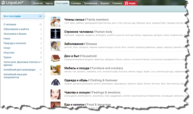 Глоссарии очень полезны для изучения слов по определенной теме.