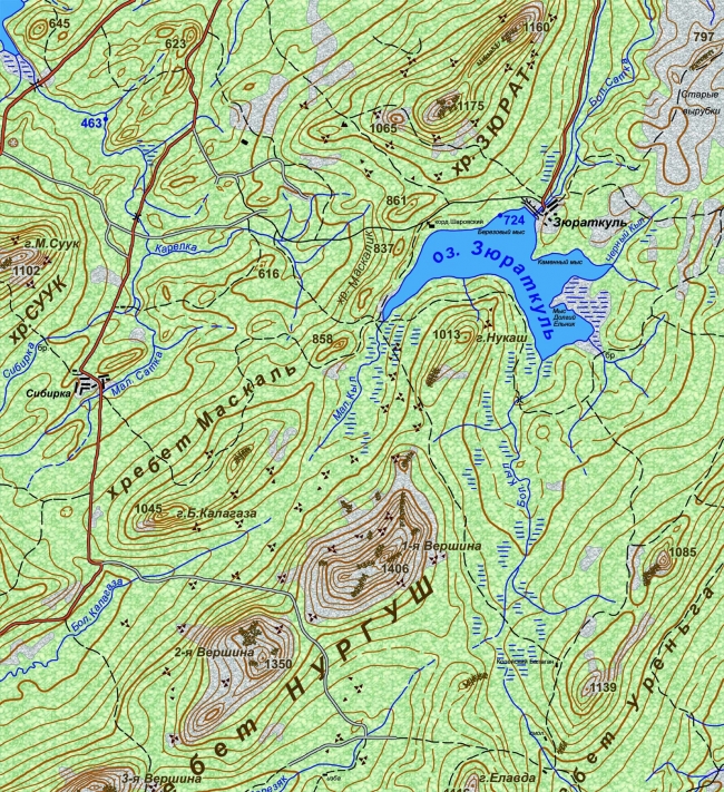 Юрюзани. Наиболее значительная вершина 1406 м находится на северной части
