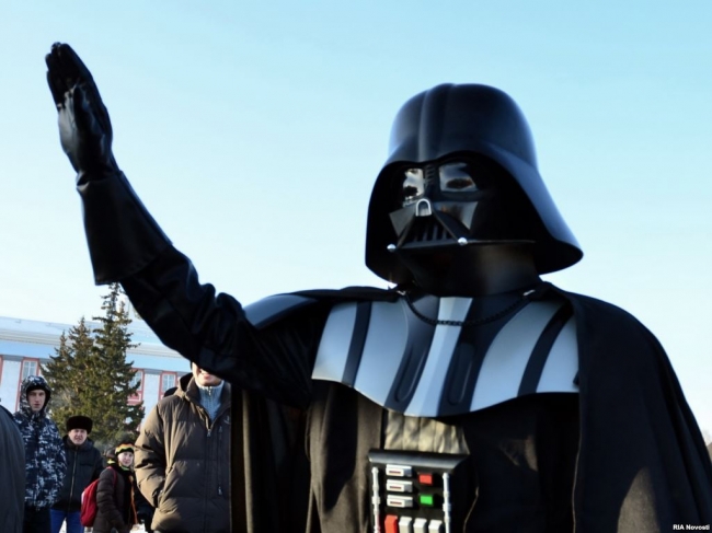 Украине сносит башню! Кандидат в президенты Украины Дарт Алексеевич Вейдер 29 марта обратился к избирателям. Накануне претендент на президентское кресло принес все необходимые документы в ЦИК страны, в том числе и об уплате денежного залога на сумму 2,5 млн гривен. Эти деньги, по признанию Дарта Вейдера, полгода собирали его клоны на улицах Украины.