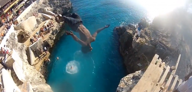 Эмма Дальстрем сальто на 60 футов над Nine Queens в Ливиньо, Италия.