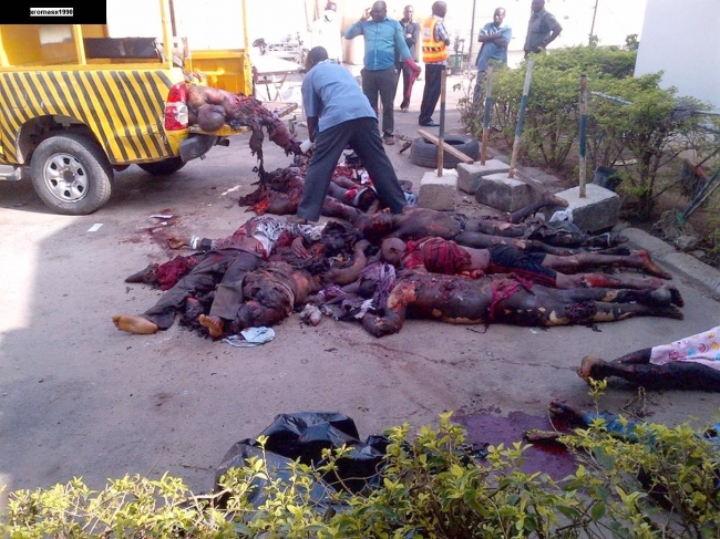 Бомба сдетонировала во дворе торгового комплекса Emab Plaza. 30 человек погибли, ещё несколько десятков получили ранения.![]()