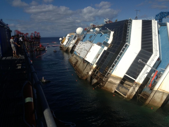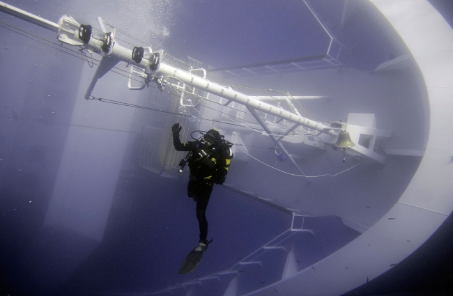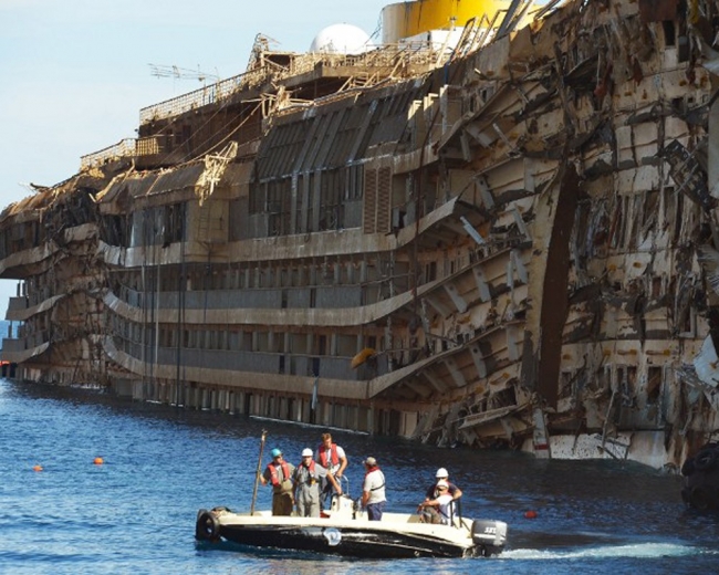 Итальянская полиция обнародовала подводные кадры, потерпевшего крушение круизного лайнера Costa Concordia.