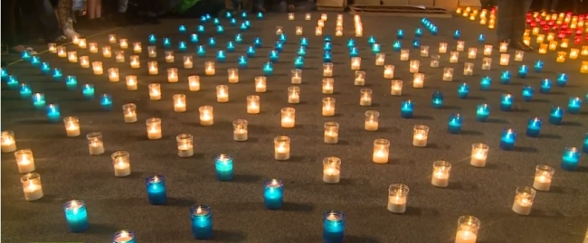 Сторонники независимости Каталонии устроили в Глазго акцию в поддержку выхода Шотландии из состава Великобритании. Активисты зажгли свечи, расставленные в форме шотландского и каталонского флагов.