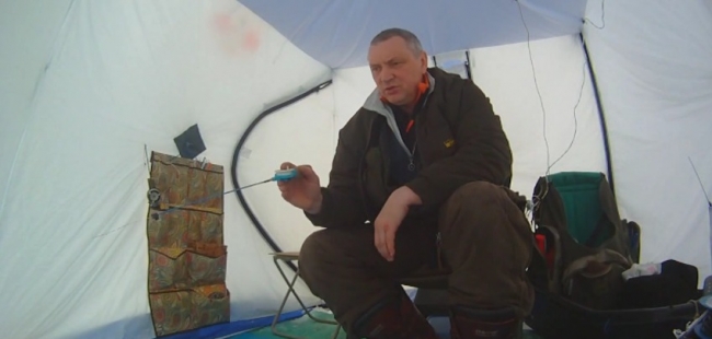 Под утро решил вздремнуть, но через пол часа меня разбудил писк сигнализатора. Пока понял, чё к чему, пока включил свет, пока нагнулся к удочке, плавающий всё это время поплавок, всё таки предательски заглубился в своё исходное положение. Обидно! Утром ещё одна поклёвка, и вроде вовремя подсёк, и дотащил до лунки, но зацеп за лёд , и досадный сход "подлеца" грамм на 500-700. Опять включил камеру, и увидел на дне мирно "пасущихся" на прикормочном столе, окуней, в перемешку с "фанерой". И даже из редка лещишки проплывали. Мои старательные попытки раздразнить рыбу и насадкой, и всевозможной безнасадкой, увы, были тщетны. Полный игнор всего представленного "меню". Ни тычка, ни поклёвки. В 11-00 позвонила жена, что надо раньше забрать сына из садика, поэтому пришлось сворачиваться, и тащиться восвояси! Получилось всё немного скомкано, и как всегда не хватило времени, но думаю, по тихоху разберусь во всех тонкостях настройки и работы оборудования.