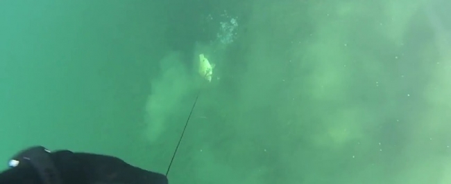 Видео подводной охоты Путина на щуку в Туве / Video spearfishing for pike Putin in Tuva Пресс-служба Кремля распространила видео подводной охоты президента России Владимира Путина на щуку в Туве. Кадры, снятые на закрепленную на маске экшн-камеру,