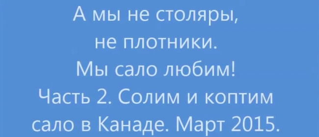 Дядя Вова: Солим и коптим сало в Канаде часть 2. После съёмки первой части фильма о солении сала в Канаде мы решили снять и вторую часть. Как говорится - от друзей секретов нет. Надеюсь вам понравится этот общеобразовательный и научно-познавательный фильм о том, как нужно профессионально коптить сало.На многие вопросы есть ответы в одном из видео или в блоге: knor.ca