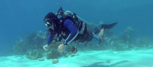 Самое интересное и сложное упражнение, требующее демонстрации необходимых аквалангисту навыков, умение плавать, нырять, управлять собственным телом и снаряжением. Суть его заключается в том, что подводник полностью снимает с себя снаряжение под