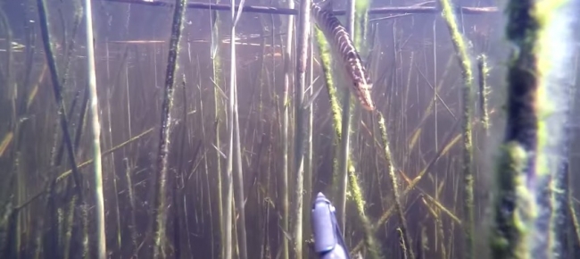 Видео подводной охоты Путина на щуку в Туве / Video spearfishing for pike Putin in Tuva Пресс-служба Кремля распространила видео подводной охоты президента России Владимира Путина на щуку в Туве. Кадры, снятые на закрепленную на маске экшн-камеру,