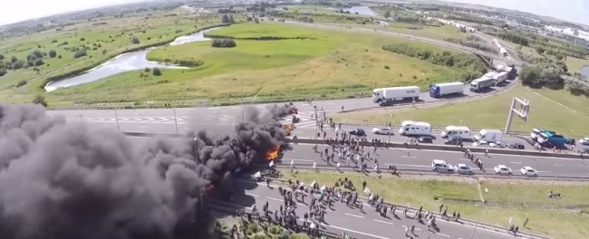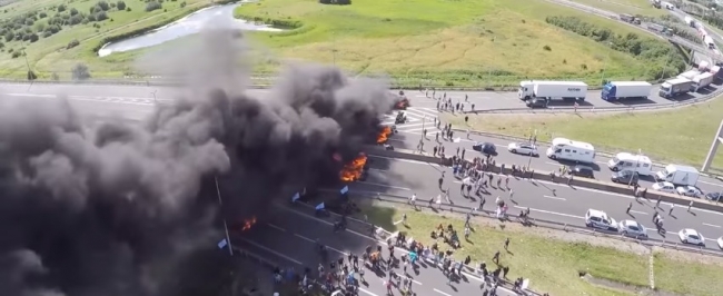 Во Франции перекрыли тоннель под Ла-Маншем. Работники французской транспортной компании MyFerryLink подожгли покрышки на въезде в тоннель под Ла-Маншем в знак протеста против закрытия организации.